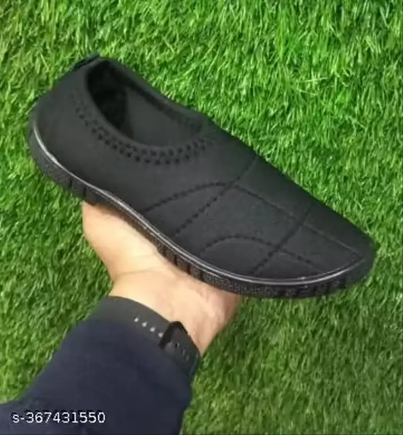 All-black quilted slip-on shoe with rubber sole. Lightweight and comfortable for everyday casual use.