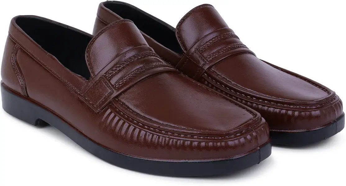 Premium PVC penny loafer with braided saddle detail and ribbed vamp. A smart slip-on for office, formal occasions and daily Indian wear. Available in brown and black.